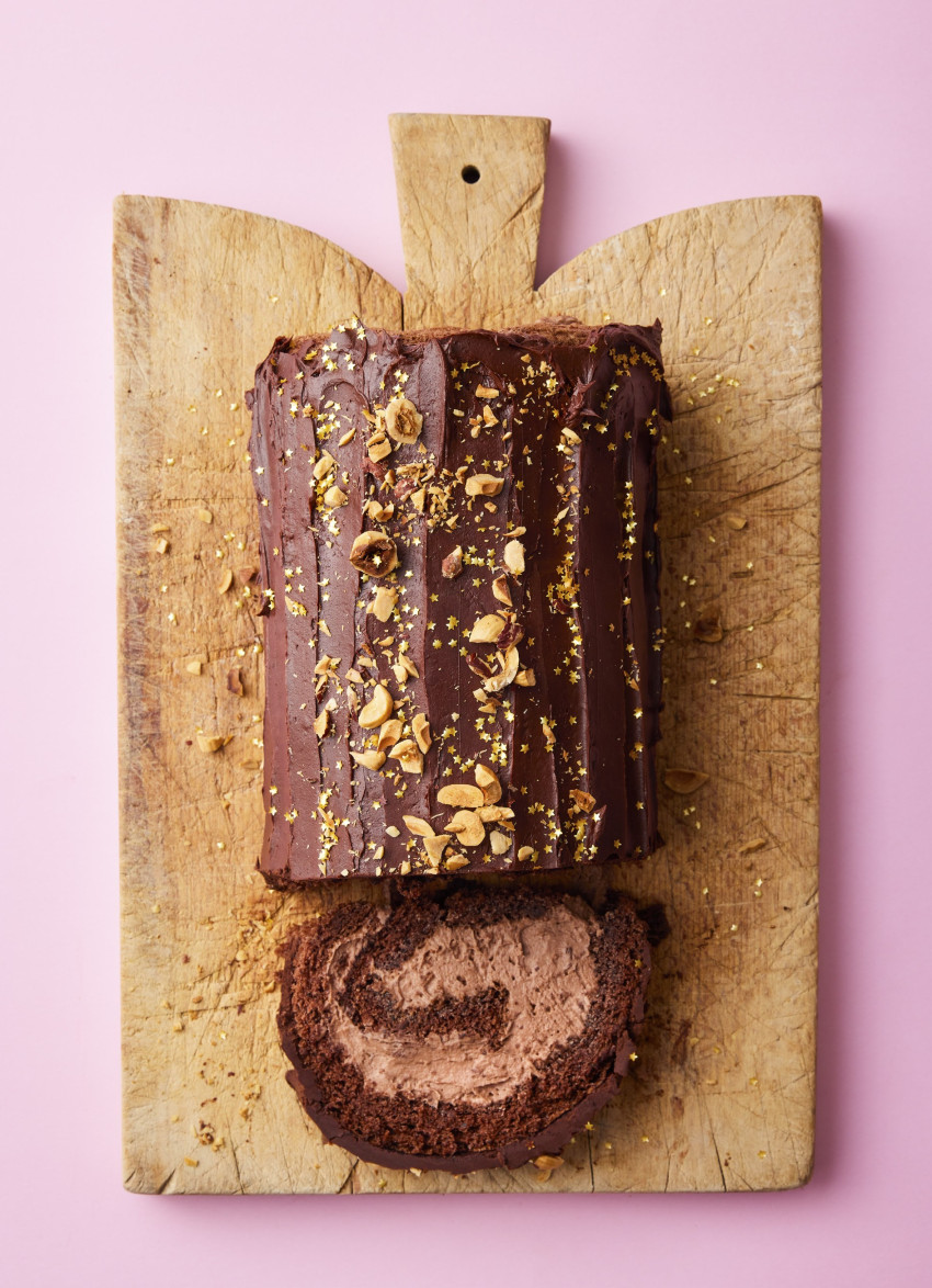 Chocolate Roulade with Hazelnut Cream and Chocolate Ganache