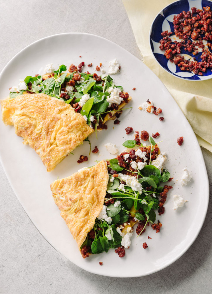 Chorizo, Watercress and Goat's Cheese Omelette
