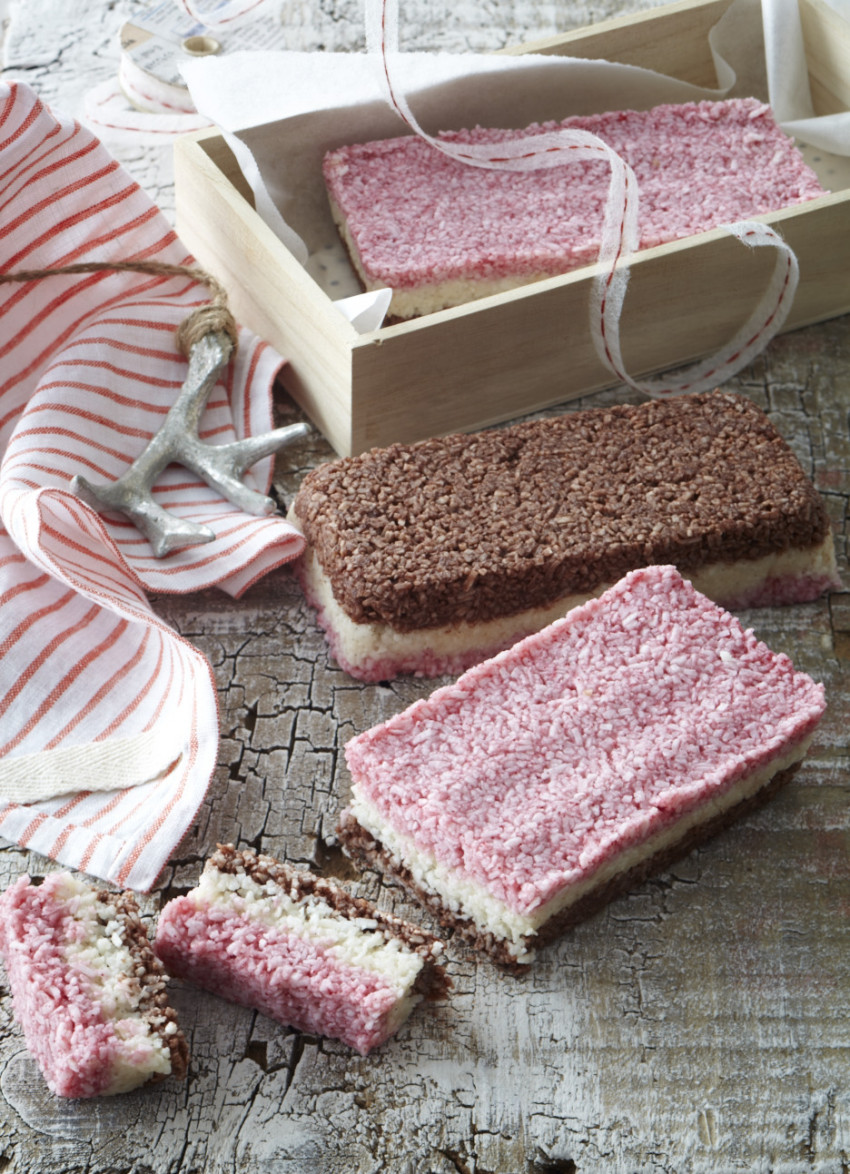 Coconut Ice Raspberry, Vanilla and Chocolate