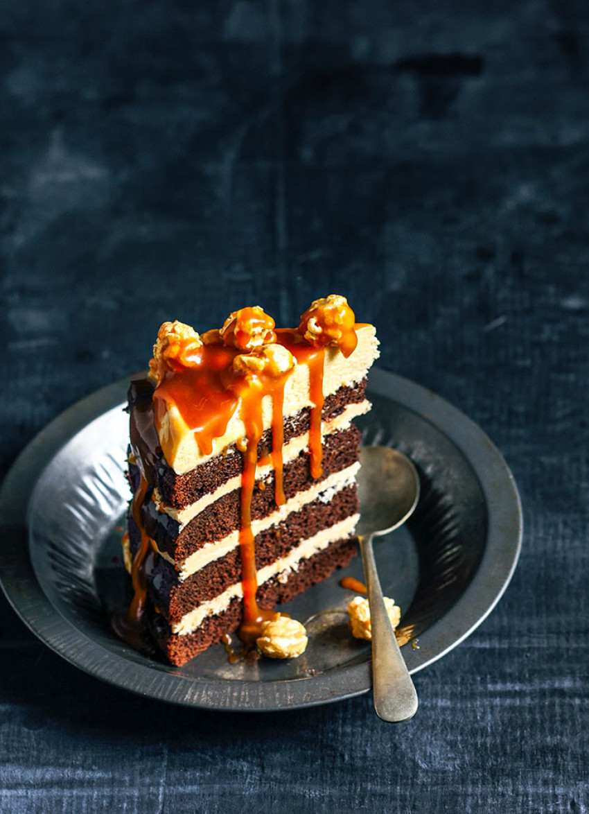 To serve: Serve cake drizzled with Salted Caramel Sauce and salted caramel popcorn, to garnish. Serves 12.