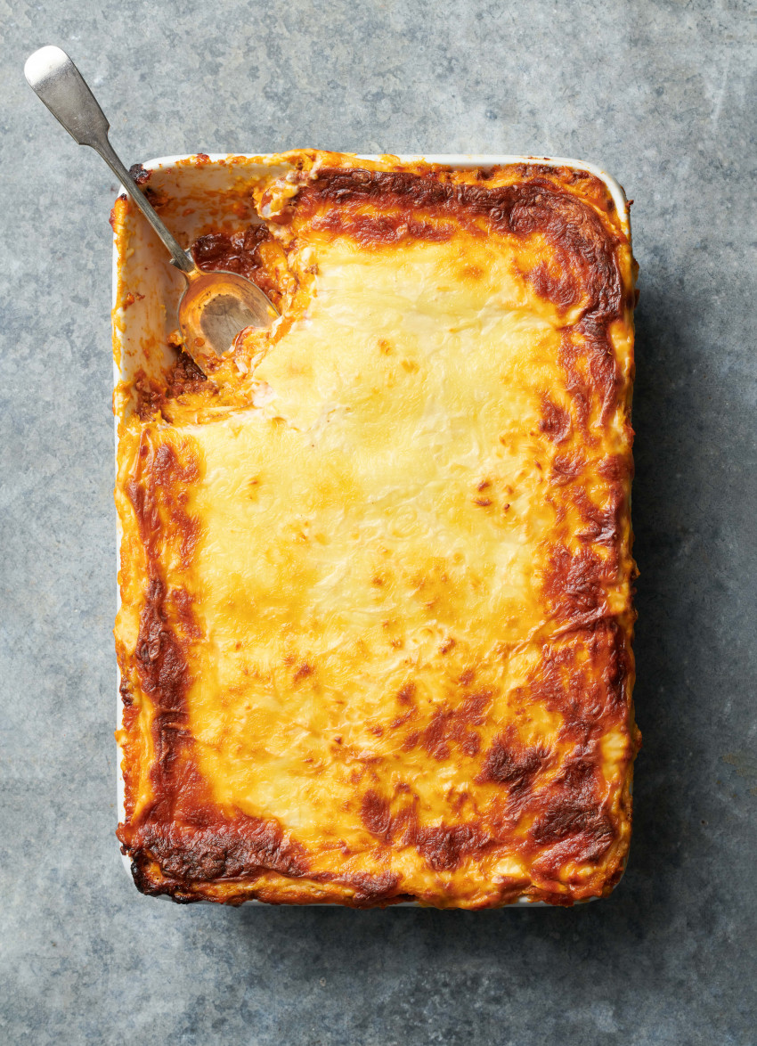 To assemble: Spread a thin layer of meat sauce in the base of the pan. Cover with a layer of pasta then ½ each of the meat sauce, vege mash and the bechamel. Repeat to make another layer. Scatter over the mozzarella. Bake for 40 minutes or until golden and bubbling. Cover with foil and leave for at least 10 minutes before serving. The lasagne can be frozen once cooked, then reheated to serve.