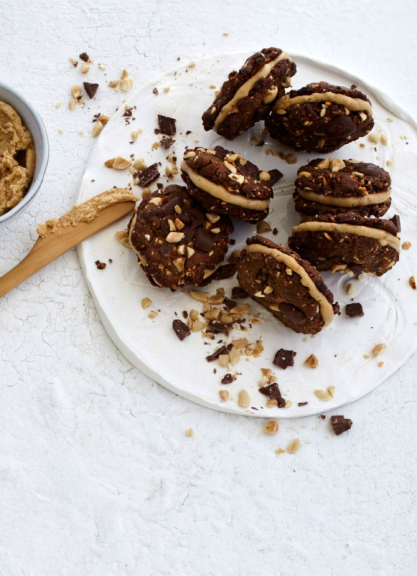 Crunchy Peanut Butter and Chocolate Cookie Sandwiches