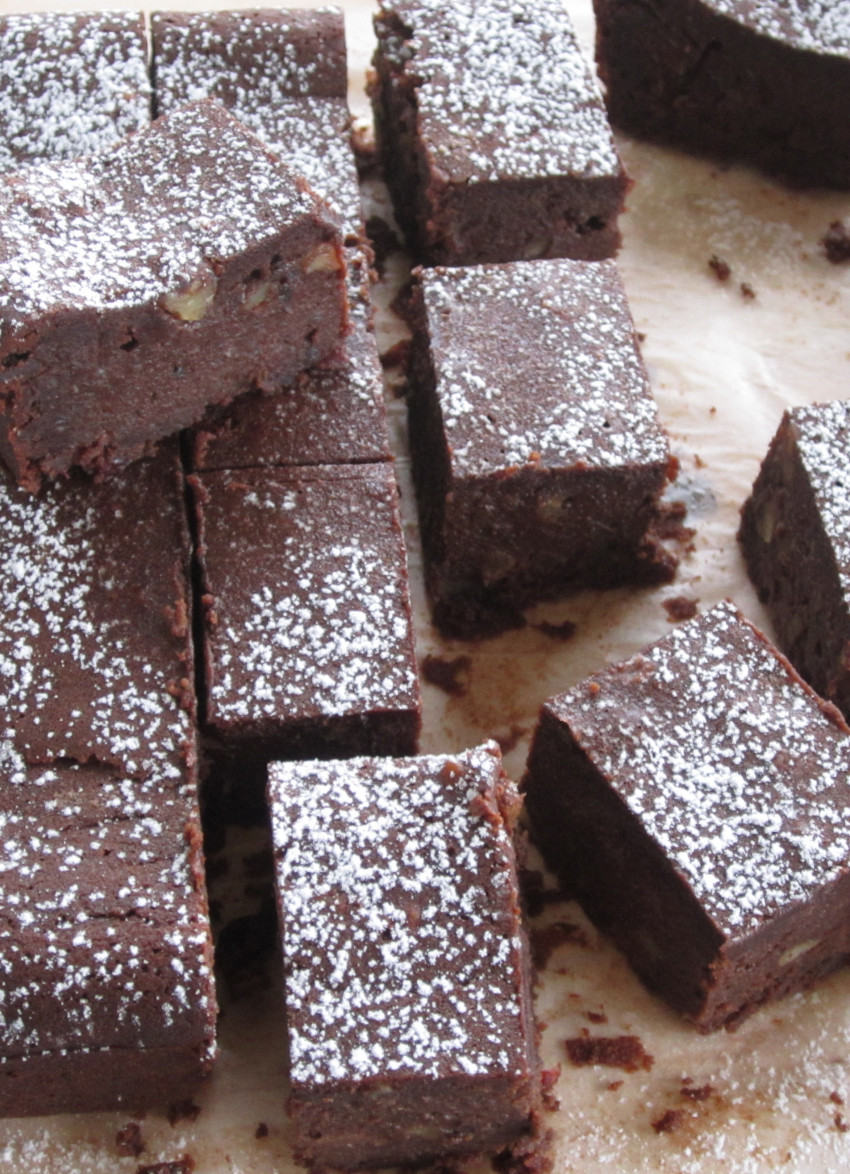 This is a dense and utterly delicious brownie with a fudgy rather than a cake-like texture. The black beans keep the brownie moist, but impart no flavour.