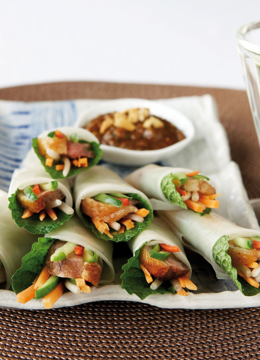 Duck Rice Paper Rolls with Sweet Chilli and Peanut Dipping Sauce