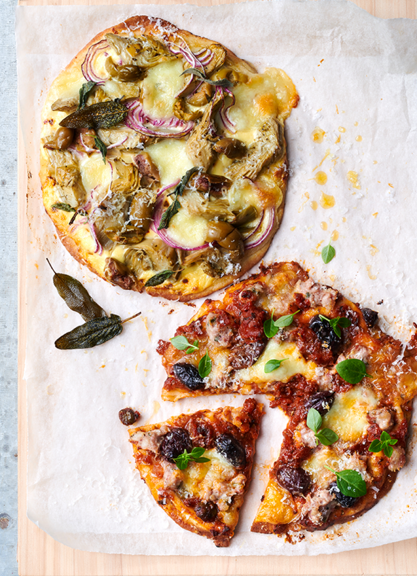 Marinated Artichoke, Sage and Parmesan Pizzas (v)