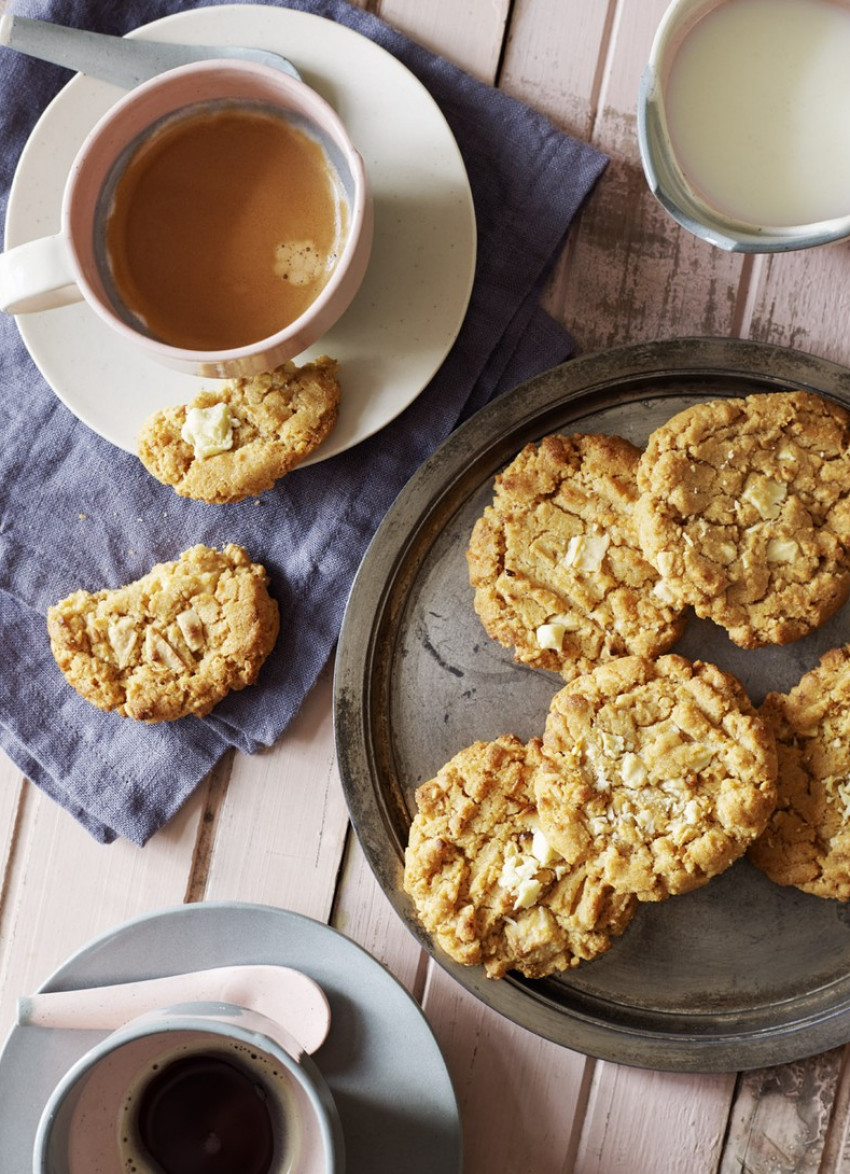 Bake for 9-10 minutes until golden, turning the tray for even browning if needed. Cool on the tray for 10 minutes before carefully transferring to a cooling rack. The biscuits are very fragile when they first come out of the oven.Makes about 24, depending on their size