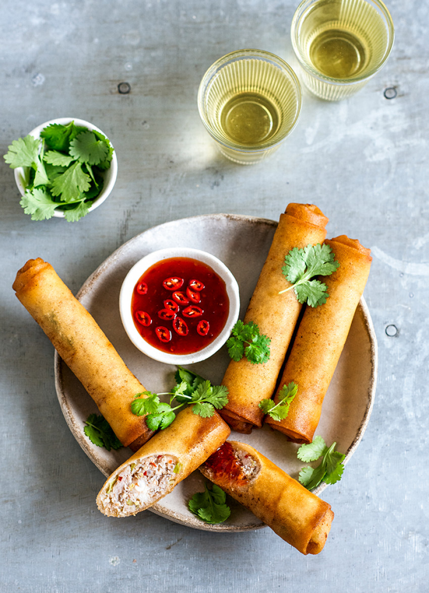 Fried Pork and Prawn Spring Rolls with Chilli Sauce