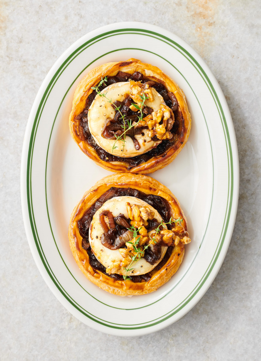 Sweet, caramelised onions, earthy thyme and goat’s cheese on crispy flaky pastry – it’s a winning combination. Adding sticky walnuts takes them to a next-level starter or a light lunch when served with a salad.