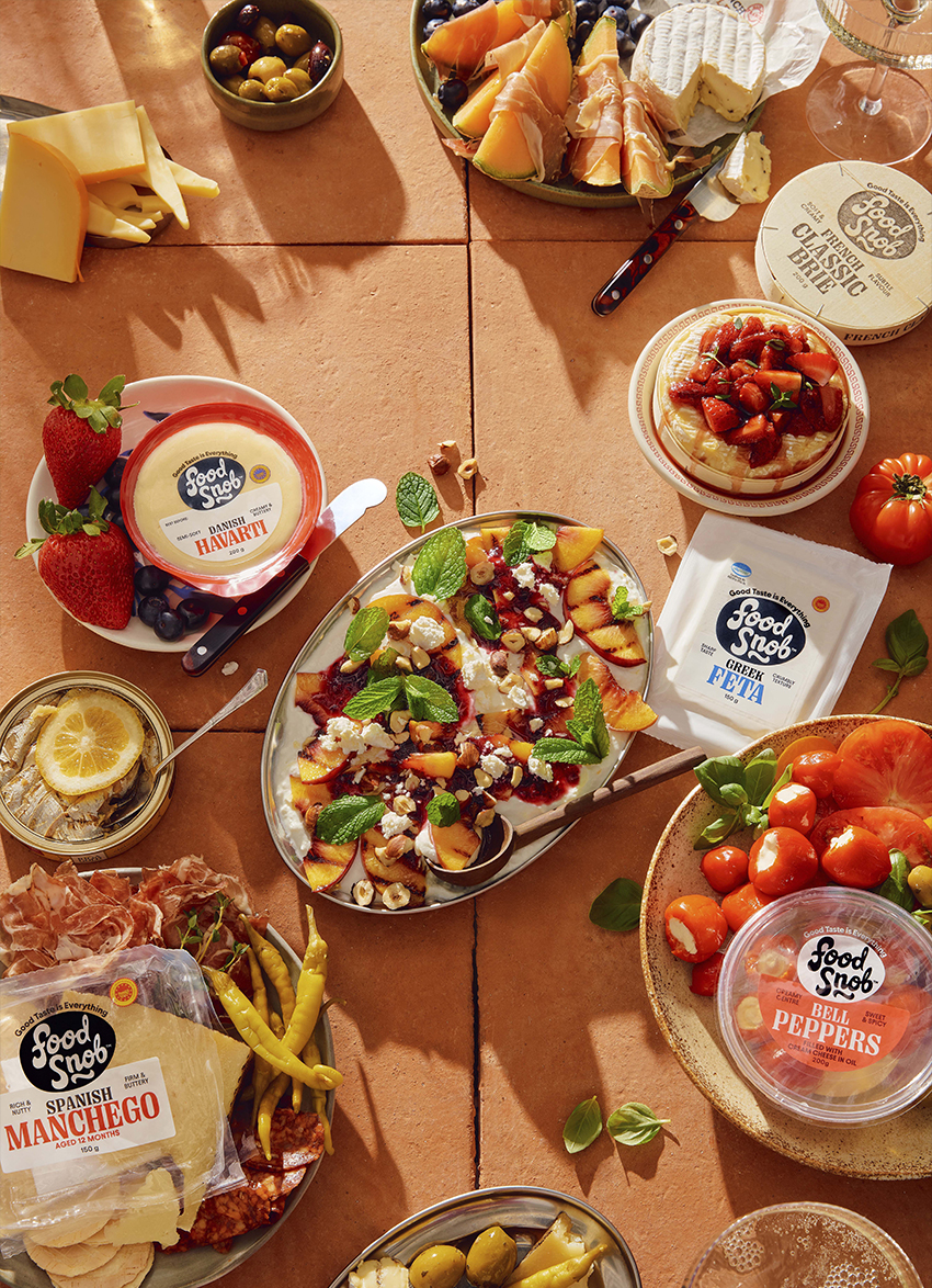 An effortless starter that balances creamy, salty feta with sweet, charred nectarines, drizzled with a tart berry coulis.