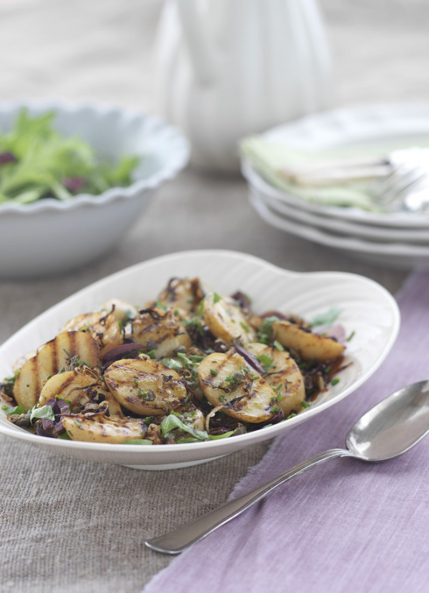 Looking for a way to give potatoes a new life? Try these grilled potatoes served with crispy onions, capers and olives for that tasty dish your next meal needs.