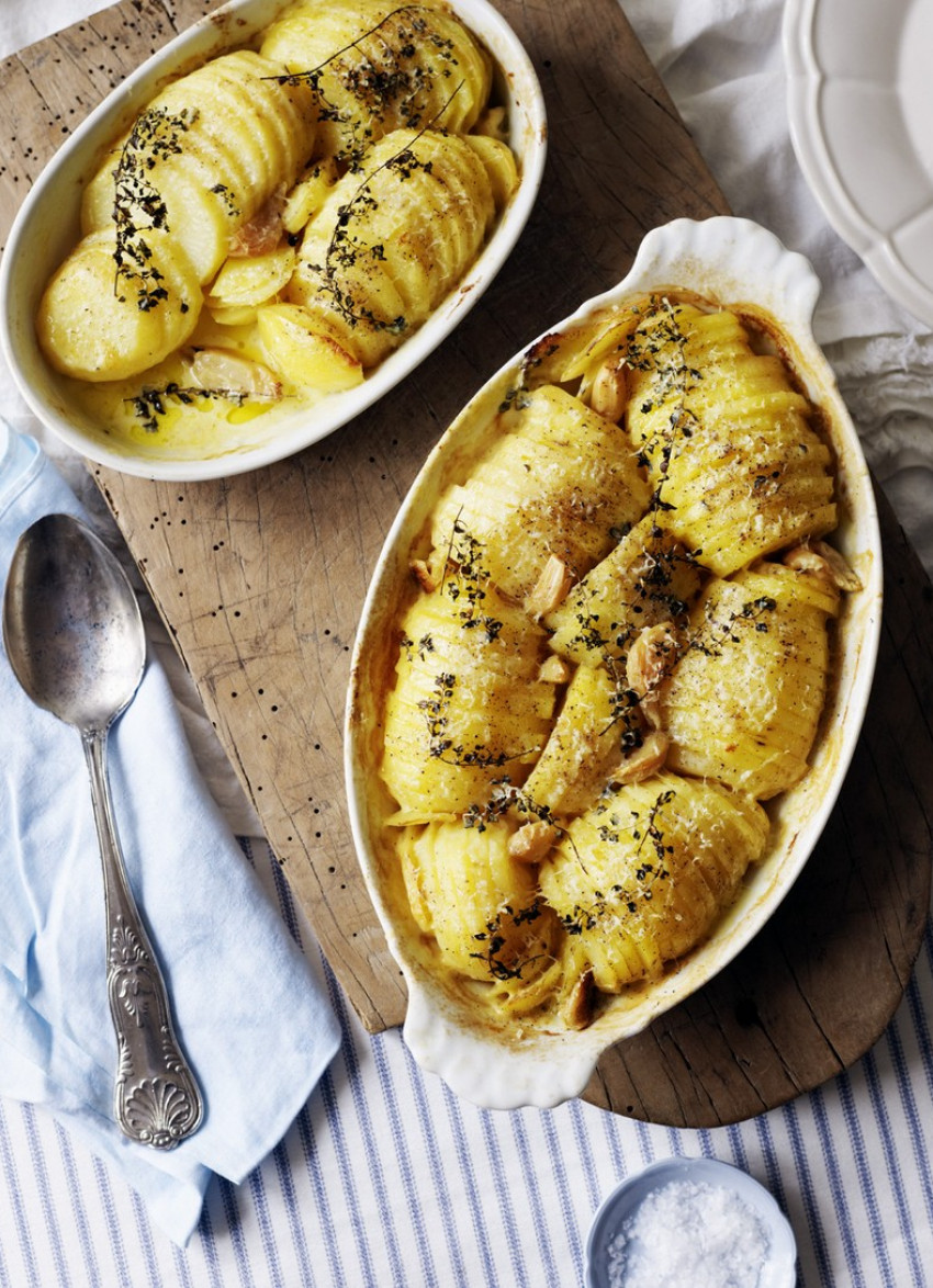 Hasselback Potatoes with Thyme, Garlic and Parmesan