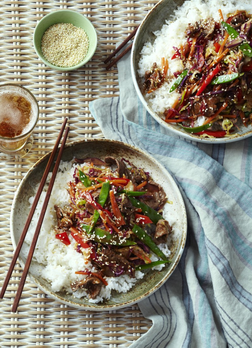 To serve: Place the rice on plates and top with the beef. Scatter with sesame seeds and serve immediately. Serves 4