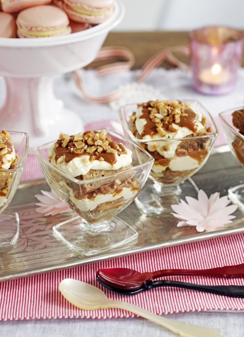 Coffee and rum soaked biscuits layered with vanilla cream, caramel sauce and peanuts is the perfect desert for any sweet toothed coffee lover.