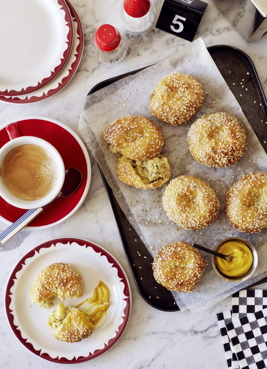Bake for 25 minutes until golden, turning the tray for even browning. Cool for at least 10 minutes as the filling is molten hot! Serve with hot mustard if desired. Makes 12