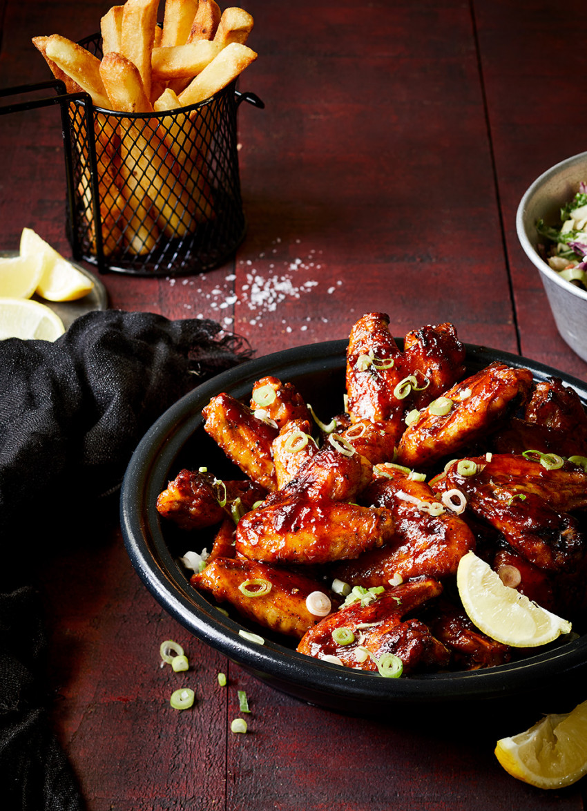 Glaze: Whisk all the ingredients together in a large heatproof bowl and set aside. Lift the hot wings off the tray and place in the bowl with the glaze. Toss so they are all well coated. Drain any liquid off the baking tray and place the wings back on. Roast for 10 minutes until golden and caramelised in places.