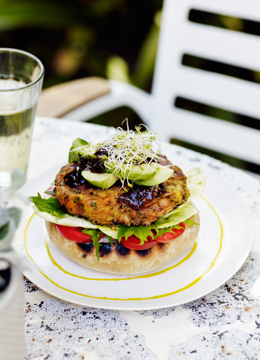Don’t let the vegetarian burger be the poor cousin at the barbecue. Spices, lemon and the almost nutty flavour of the kumara combine with chickpeas to make a meal everyone will enjoy.