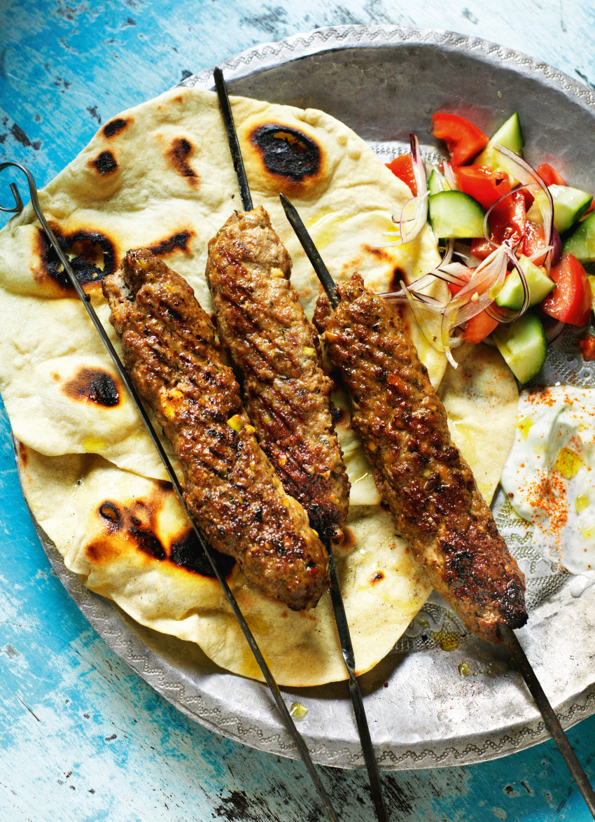 For these you really do need a flat metal skewer, the sort of thing that you are bound to buy in a shop somewhere in Turkey on holiday and then find again a year or two later languishing in the back of the garage. You need the surface area to enable you to turn them. If you use a thin, round skewer, the meat will fall off. Köfte are popular all the way from Greece to Iran and as far as India, but the combination of fennel, coriander and cumin with minced lamb, pistachio nuts and chilli flakes sums up Turkey.