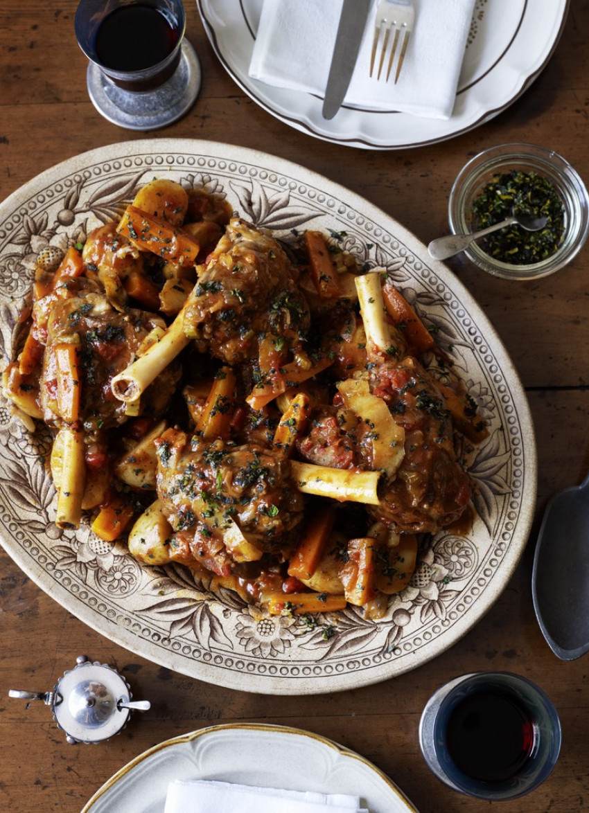 To serve: Transfer the lamb shanks and potatoes to a serving platter and cover to keep warm. If the pan juices are thin, boil over a medium heat until reduced and syrupy. Spoon the sauce over the lamb and top with the gremolata.