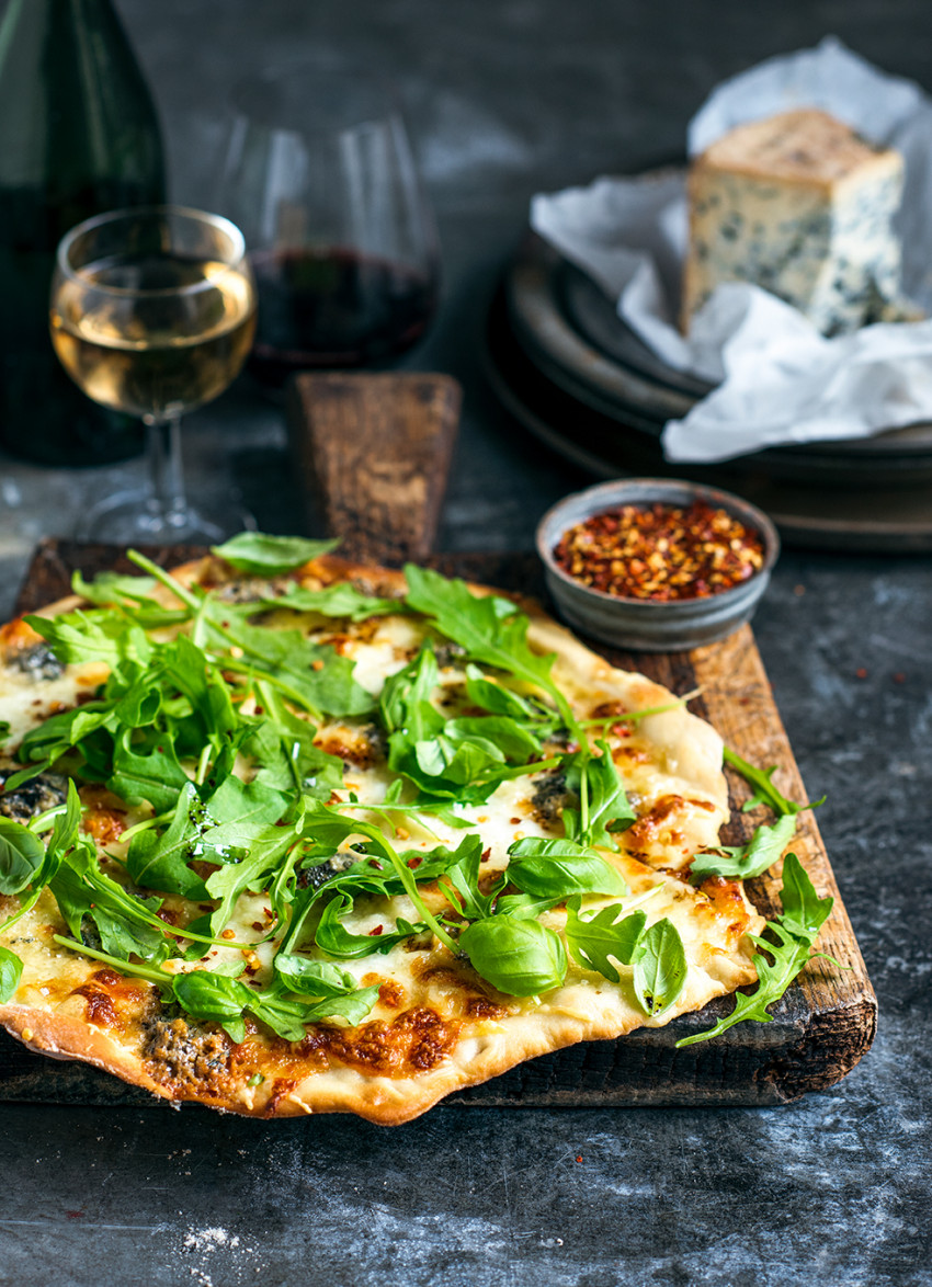 Loaded Four Cheese Pizzas with Chilli, Rocket and Lemon