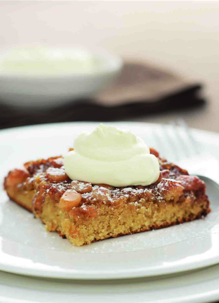 To serve: Cut into portions and serve warm with softly whipped cream.