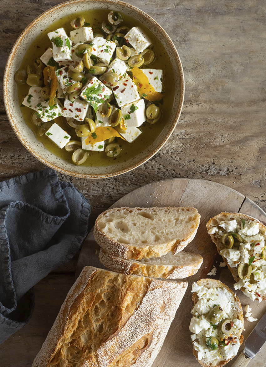 TO SERVE: Transfer the marinated feta to a serving dish and top with fresh parsley. Serve with slices of crusty bread.