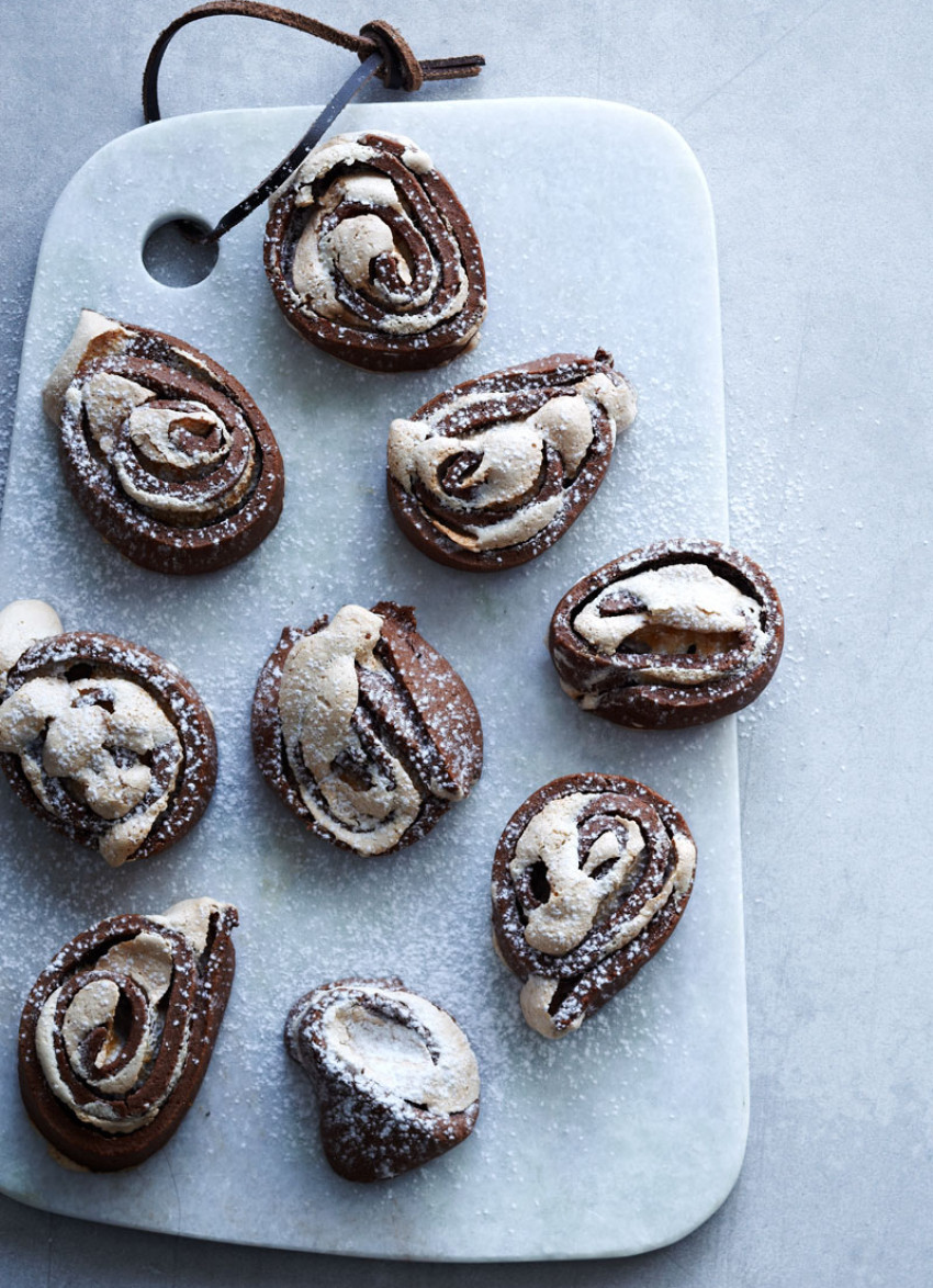 A tender chocolate biscuit encasing a spiced meringue swirl combines two favourites in one cookie.