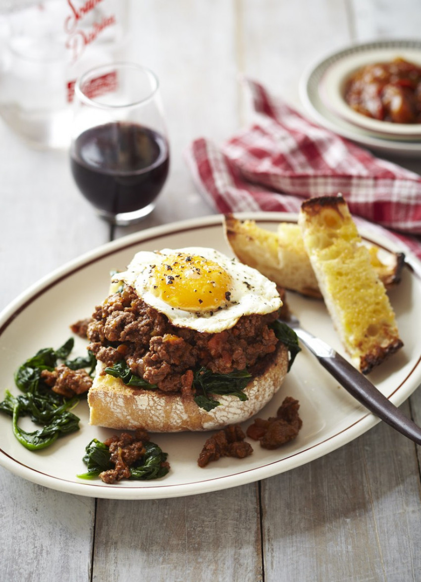 To serve: Pile straight onto buttered toast or top the toast with wilted greens then the mince, a fried or poached egg and a spoonful of relish.