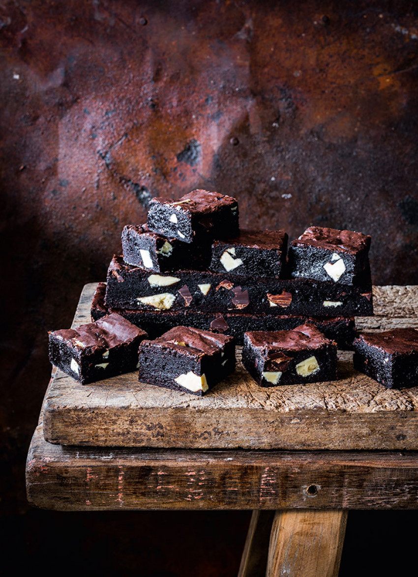 The miso adds a lovely umami flavour to this double chocolate brownie. Cut it into very small squares as it’s intensely rich.