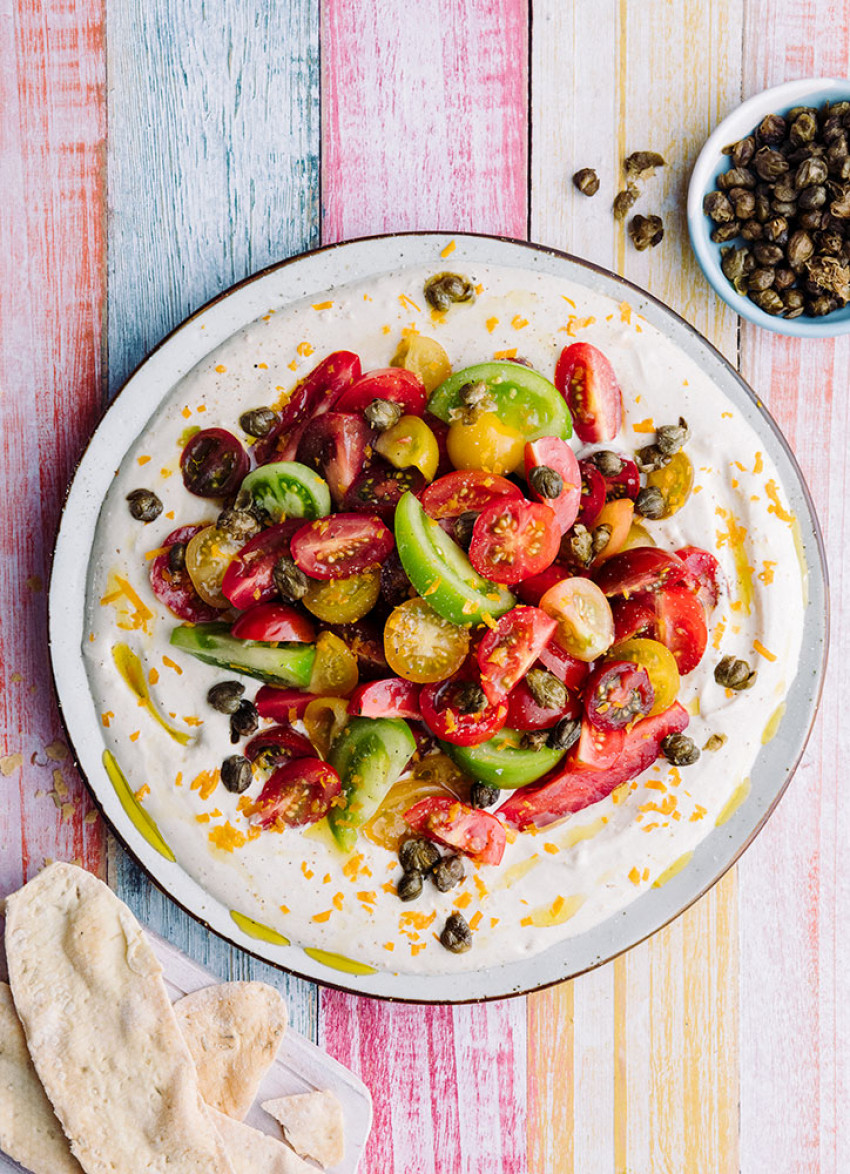Juicy tomatoes, creamy tahini and crisp salty capers make a simple but super-tasty summer salad.
