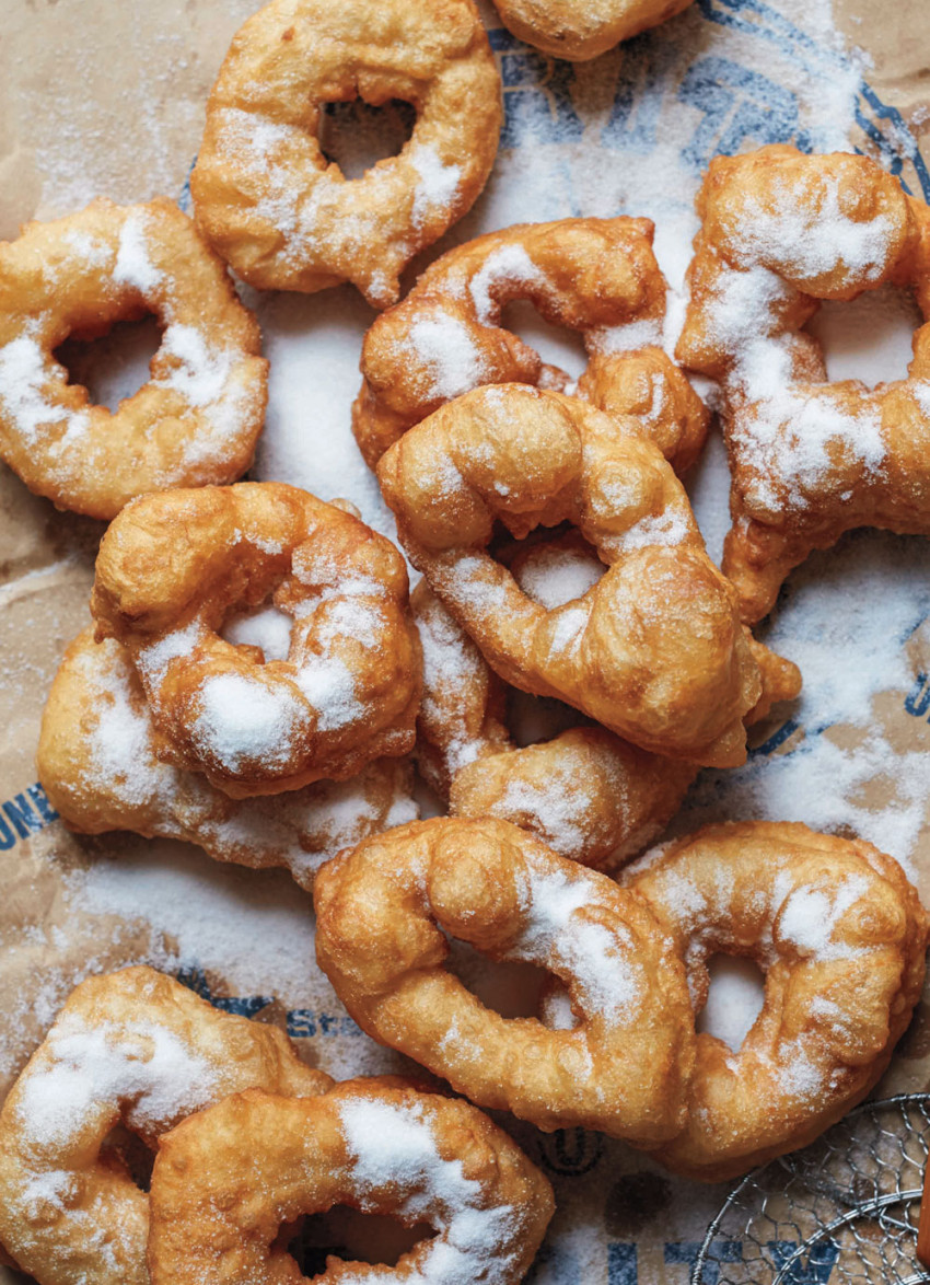 Sfinge is an airy and very light doughnut made with a sticky, almost batter-like yeasted dough that fries up like an Italian zeppole. To make these doughnuts from new book Breaking Breads, use wet hands to simply pinch off a knob of the batter and gently stretch the bit of dough into a ring shape before dropping it into hot oil.