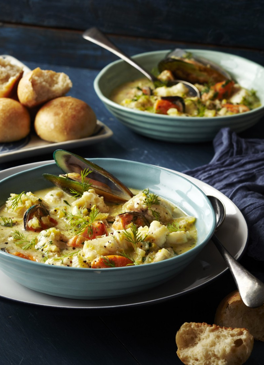The wonderful depth of flavour in this soup comes from combining mussel cooking juices and wine then lightly enriching with a little cream.
