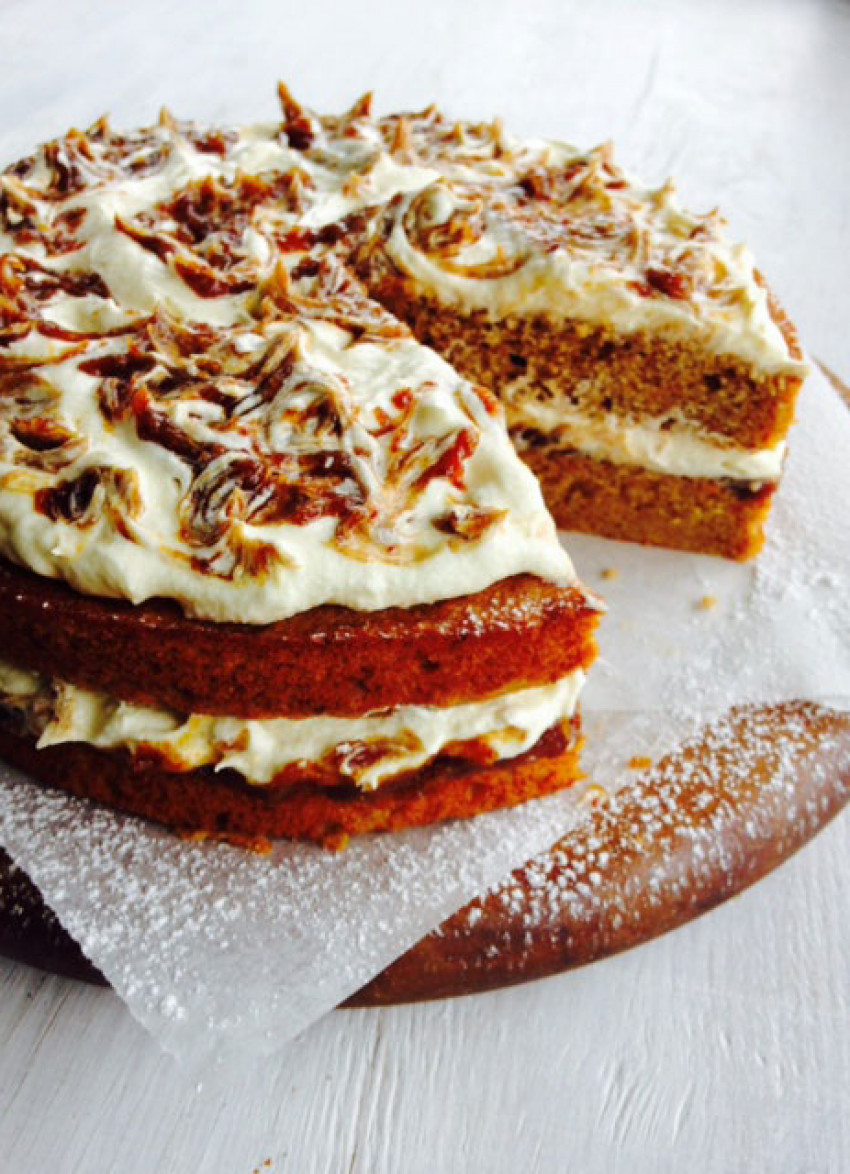 This scrumptious, moist and tender cake just melts in the mouth. It has lashings of gorgeous date caramel which is a little spicy from the fresh ginger and pillows of airy cream cheese icing.