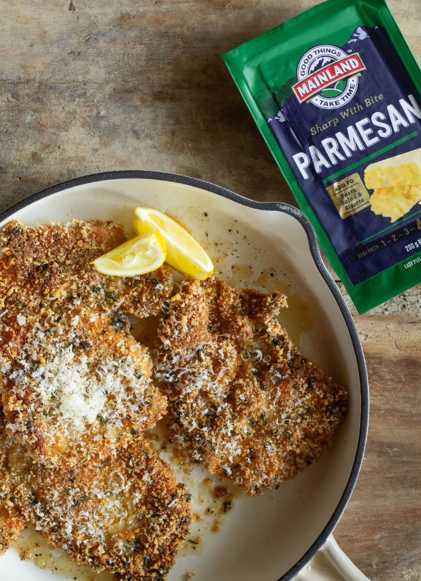 TO SERVE: Serve the schnitzel topped with extra parmesan, the slaw and lemon wedges for squeezing.