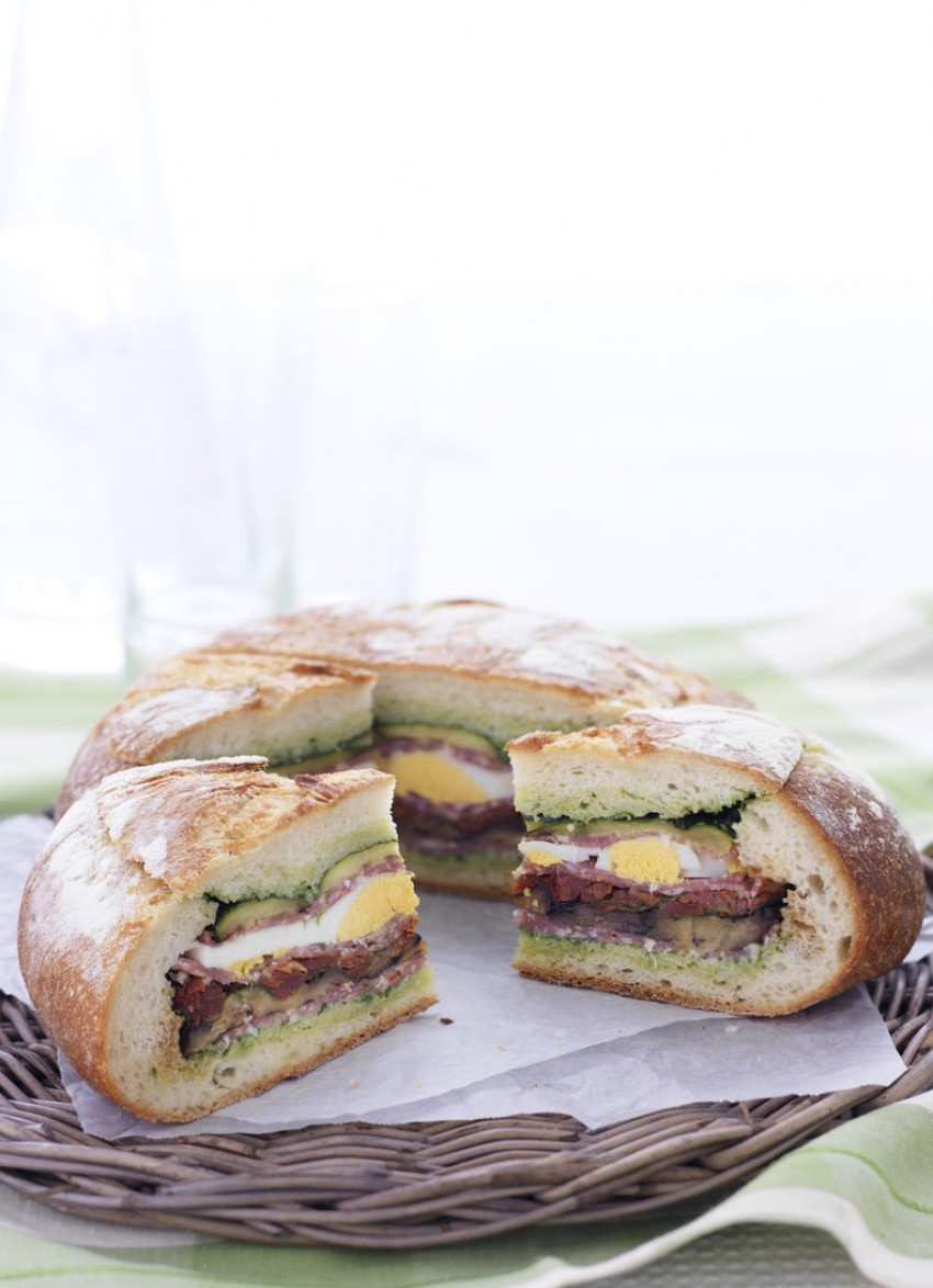 The ultimate in portable food, pack this meal in a loaf for a picnic or serve it for a casual lunch. It can be prepared well ahead, and is best kept simple with a few well-flavoured layers
