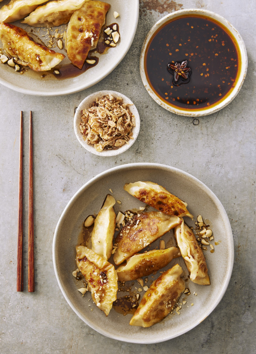 Pork, Prawn and Red Curry Dumplings with Spicy Sauce
