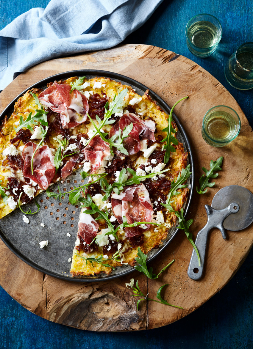 Basically a large crispy potato rosti that gets topped with tangy goat’s cheese and sweet caramelised onions – what’s not to like?
