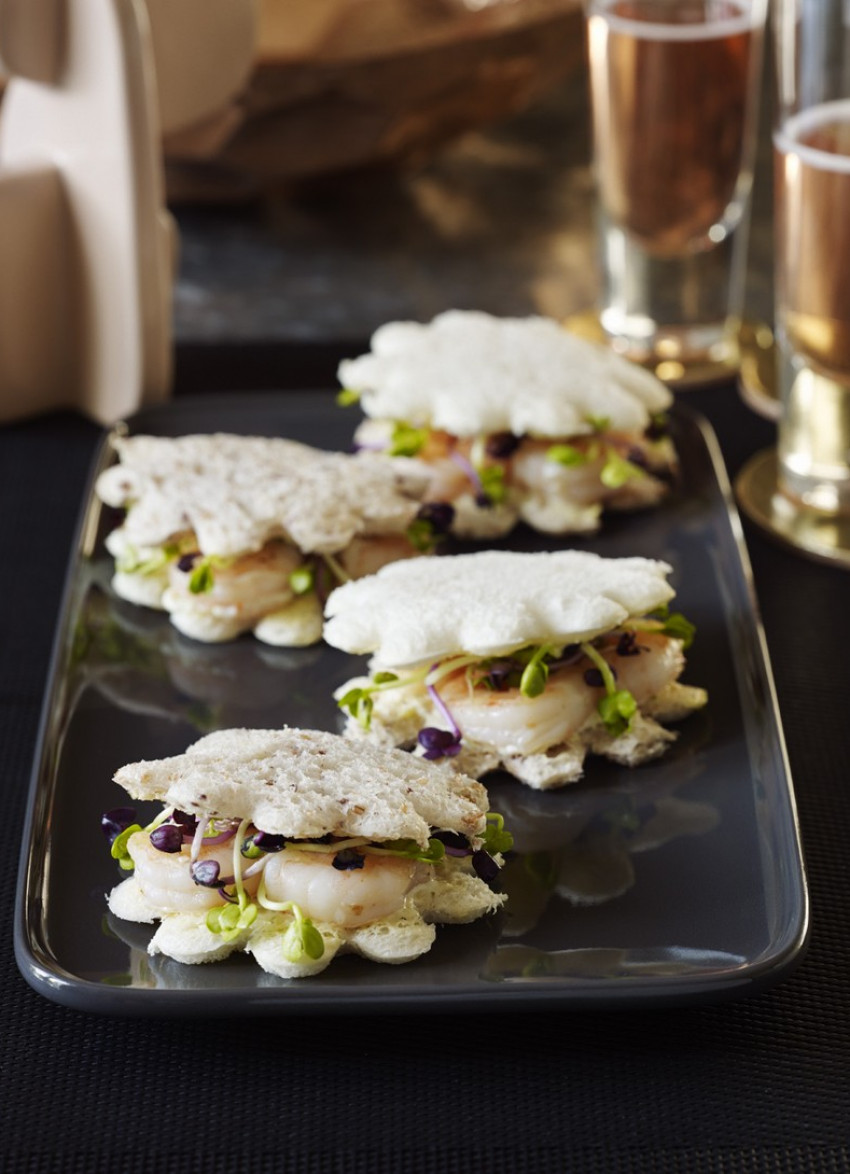 Little sandwiches are always one of the most popular foods to serve with drinks – you can make these extra special by using cooked crayfish instead of prawns.