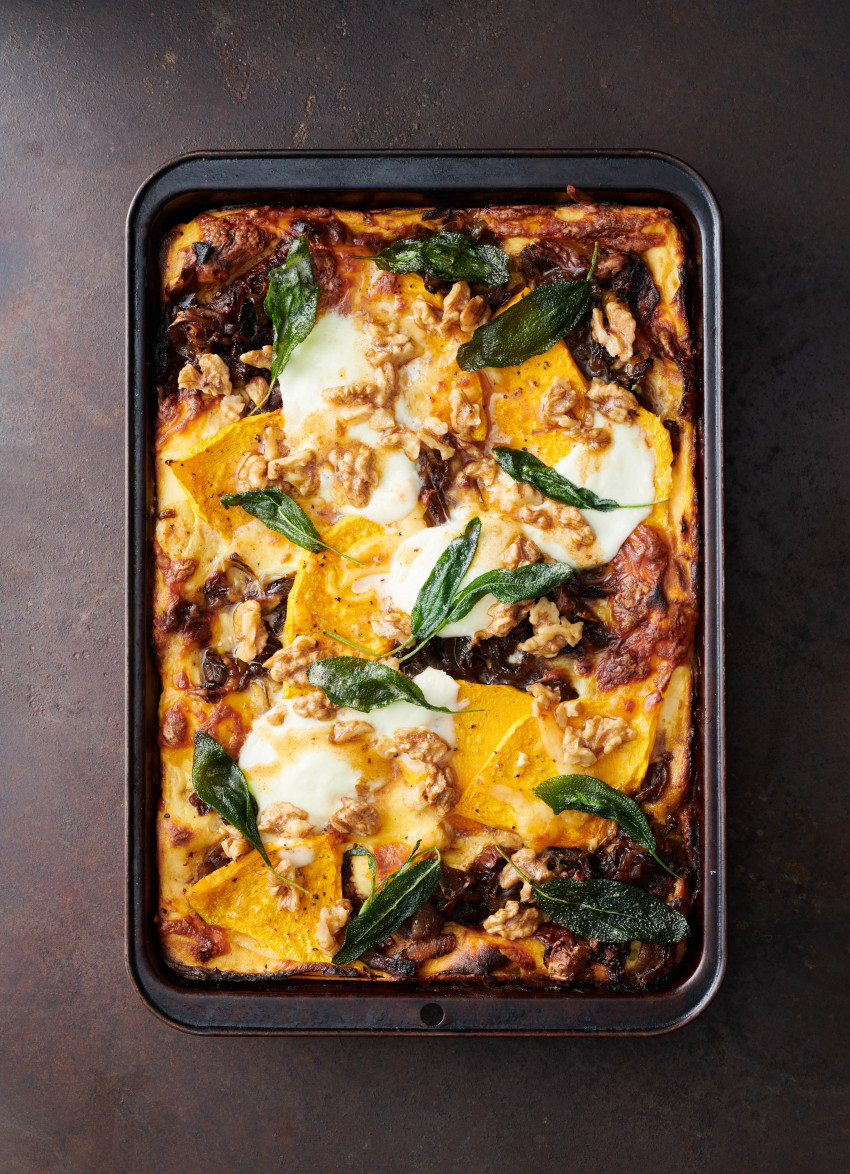 Never let anyone say vegetarian lasagne is boring. Sweet pumpkin and caramelised onions are layered up with creamy ricotta and a final flourish of decadent truffled butter.