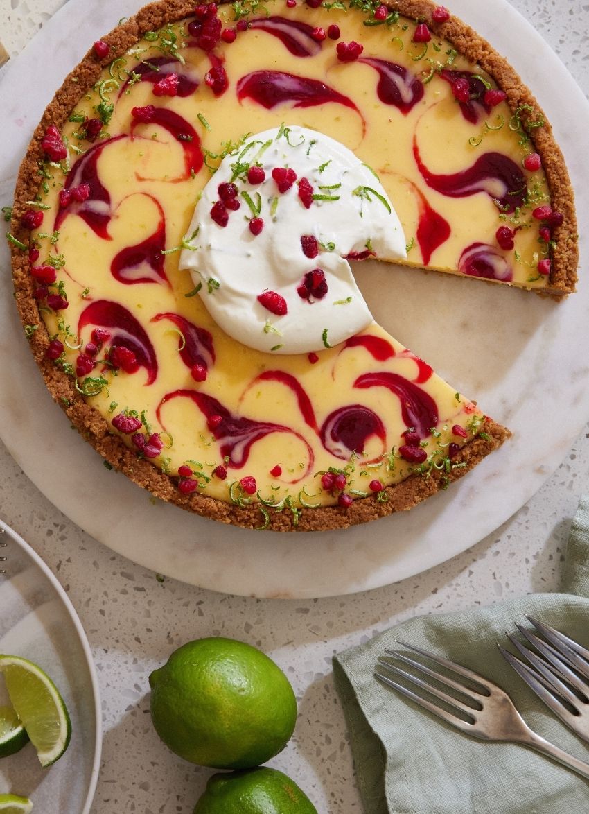 Raspberry Key Lime Pie with Tequila Cream