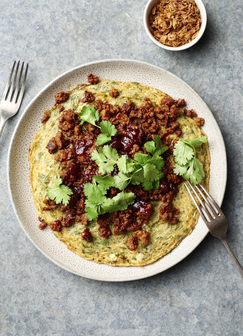 Rice Noodle Omelette with Chilli Pork