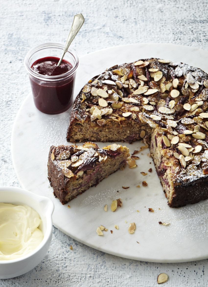 Bake for 1 hour and 25 minutes or until golden and firm and a skewer inserted into the centre comes out clean. Cover the top lightly with foil if the cake is getting too brown.