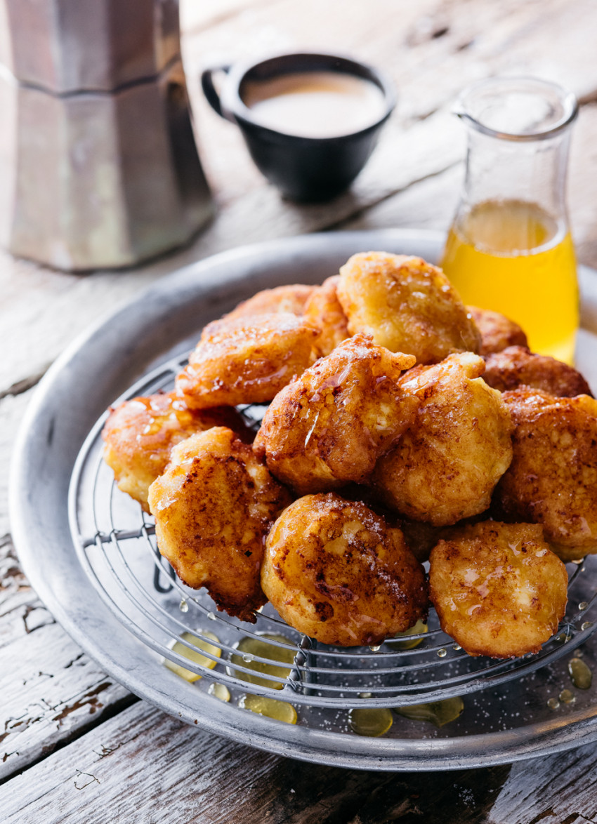Heat 1cm of oil in a sauté pan over a medium heat. Drop spoonfuls of the batter into the oil and cook for 1 minute on each side or until golden and puffed. Drain on kitchen towels.