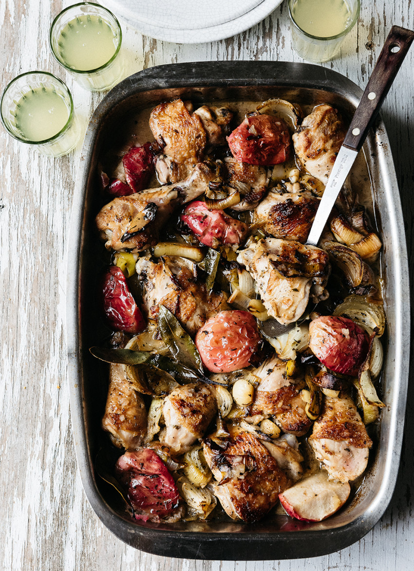 Roast Chicken, Apples, Tarragon and Crème Fraiche