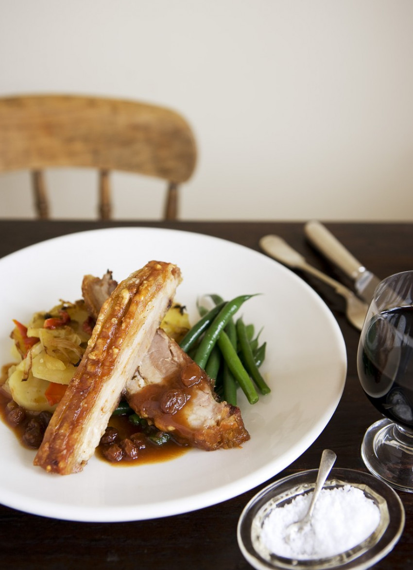 At the end of the cooking time, for a really crispy skin, place the pork under a hot grill for a few minutes.