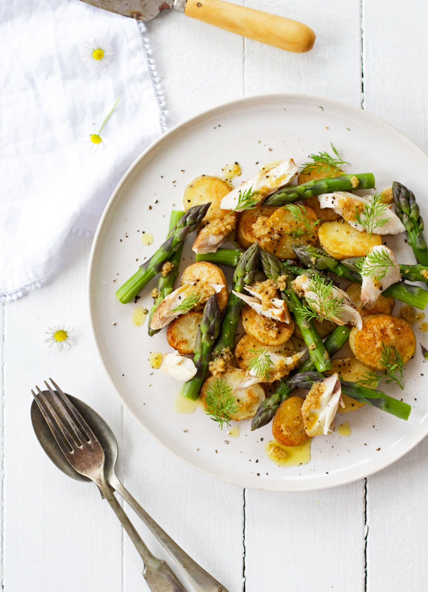 Roast Potato, Smoked Fish and Asparagus Salad with Preserved Lemon Dressing