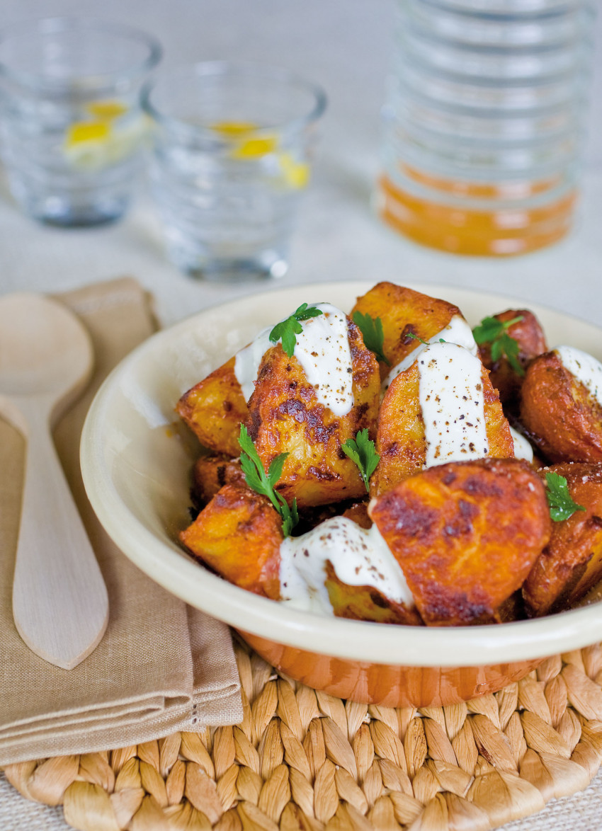 To serve: Place in a serving bowl, discarding any dark brown bits of yoghurt in the baking dish. Drizzle with yoghurt and flat-leaf parsley.