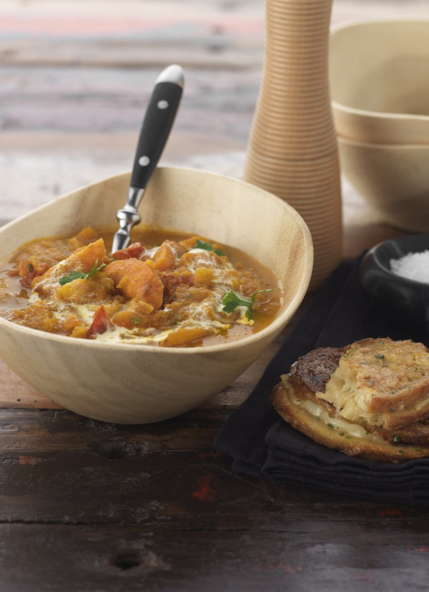 To finish: Put half the vegetables and 2 cups of the stock in a food processor and process until smooth.