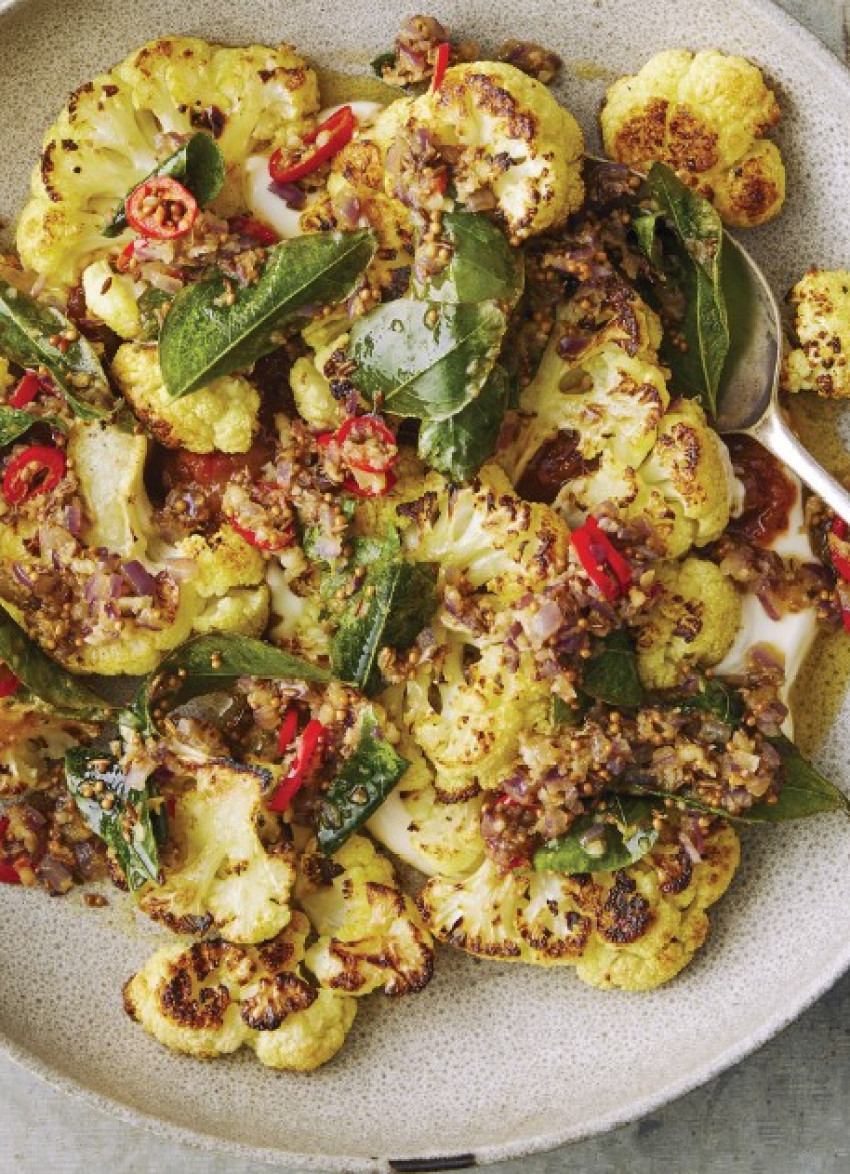 Roasted Cauliflower with Fragrant Curry Leaf Tadka