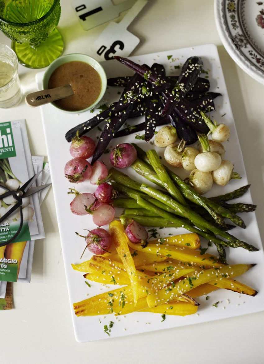 Use a single variety or a selection of vegetables in this recipe. The umami, sweet-salty miso in this dressing makes a lovely alternative to the more traditional vinaigrette.