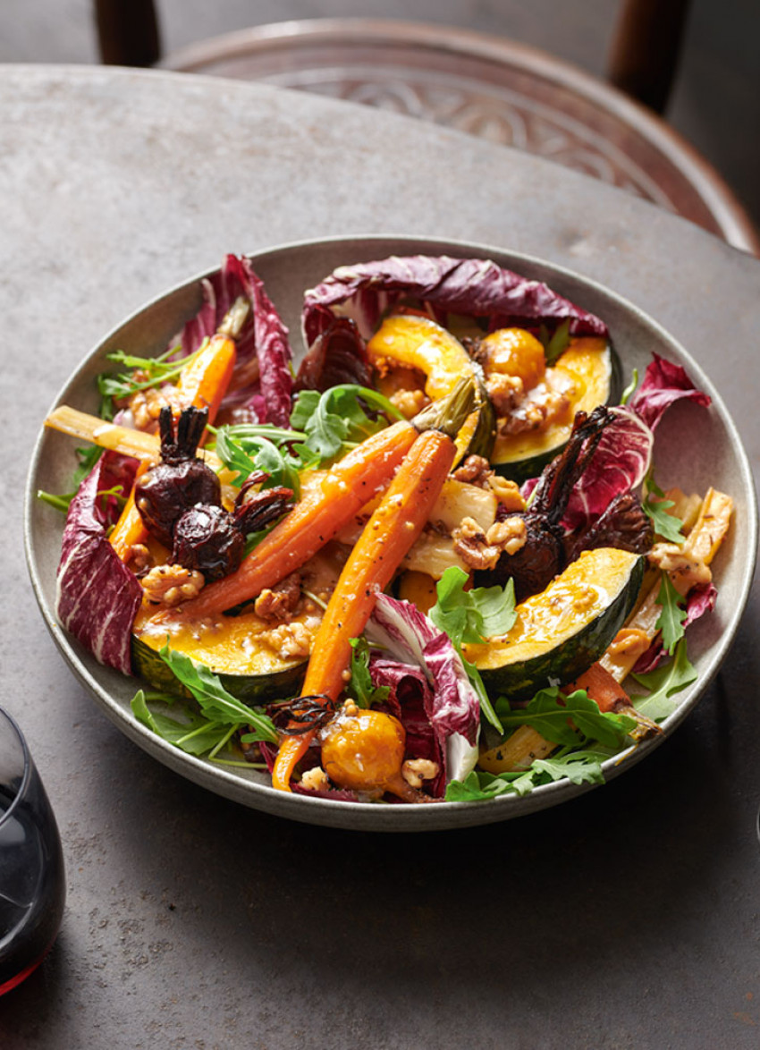 Roasting vegetables caramelises their natural sugars and brings a whole lot of deliciousness to this salad. Use your own favourite combination of veges.